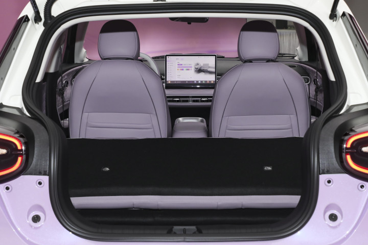 纳米01采用五门五座布局。其2663毫米的轴距为其车内空间提供了基础。其后排空间表现超出了外界对这类尺寸车型的常规预期。身高一米八左右的乘员坐在后排,腿部仍有一定余量,头部空间也尚可。车辆的座椅设计有所考量,例如加宽了肩部区域以提升舒适性,其中主驾支持电动调节,并带有加热、通风、记忆功能。此外,前排座椅可以放平,与后排座椅连接形成临时的休息空间。后备箱常规状态下326升,后排也支持整排放倒,放倒后容积为945升,此外还有个尺寸不大的前备箱,增加了空间使用的灵活性。